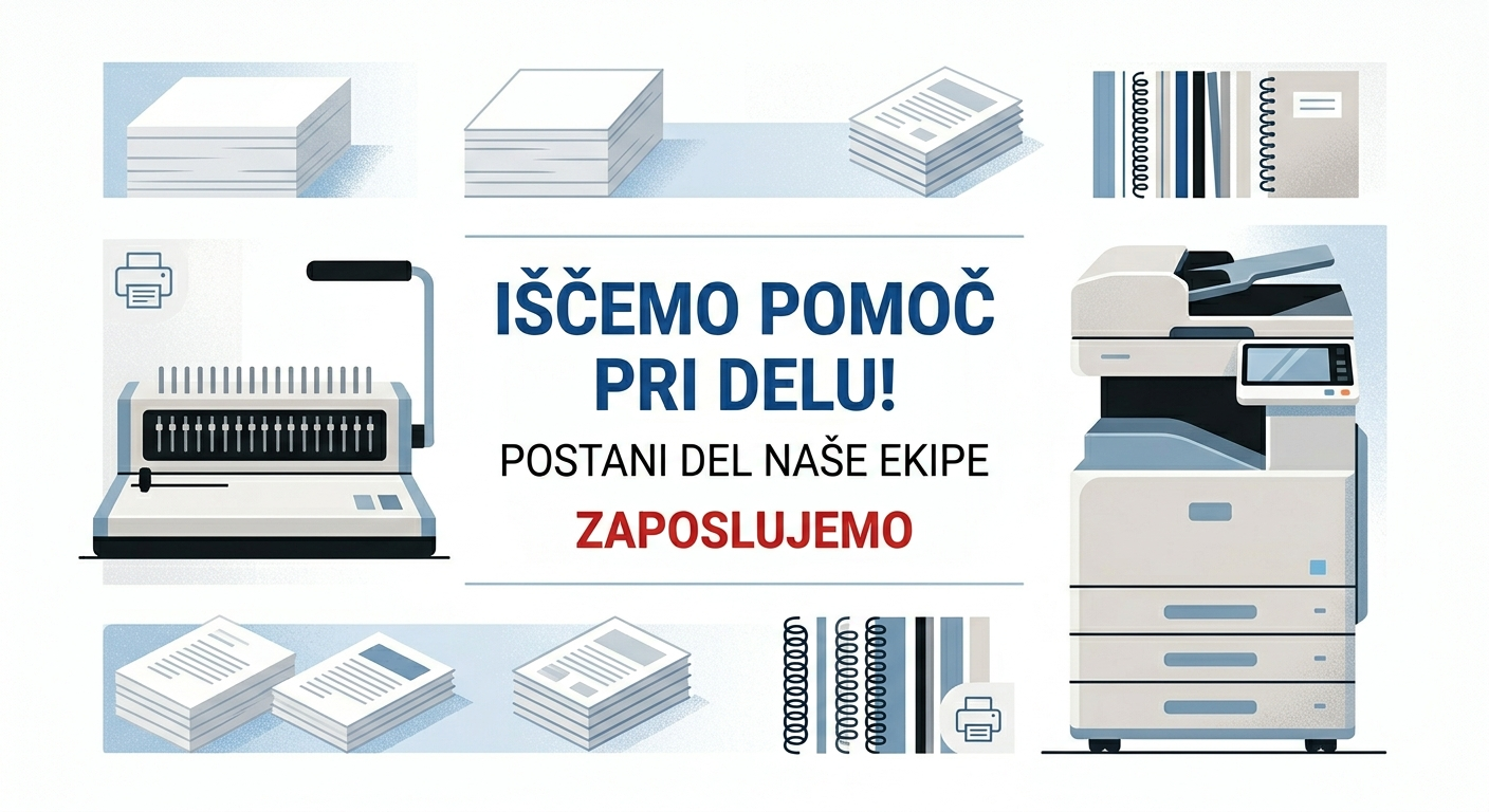 V svojo ekipo vabimo novega sodelavca/sodelavko za pomoč pri raznolikem delu v fotokopirnici.